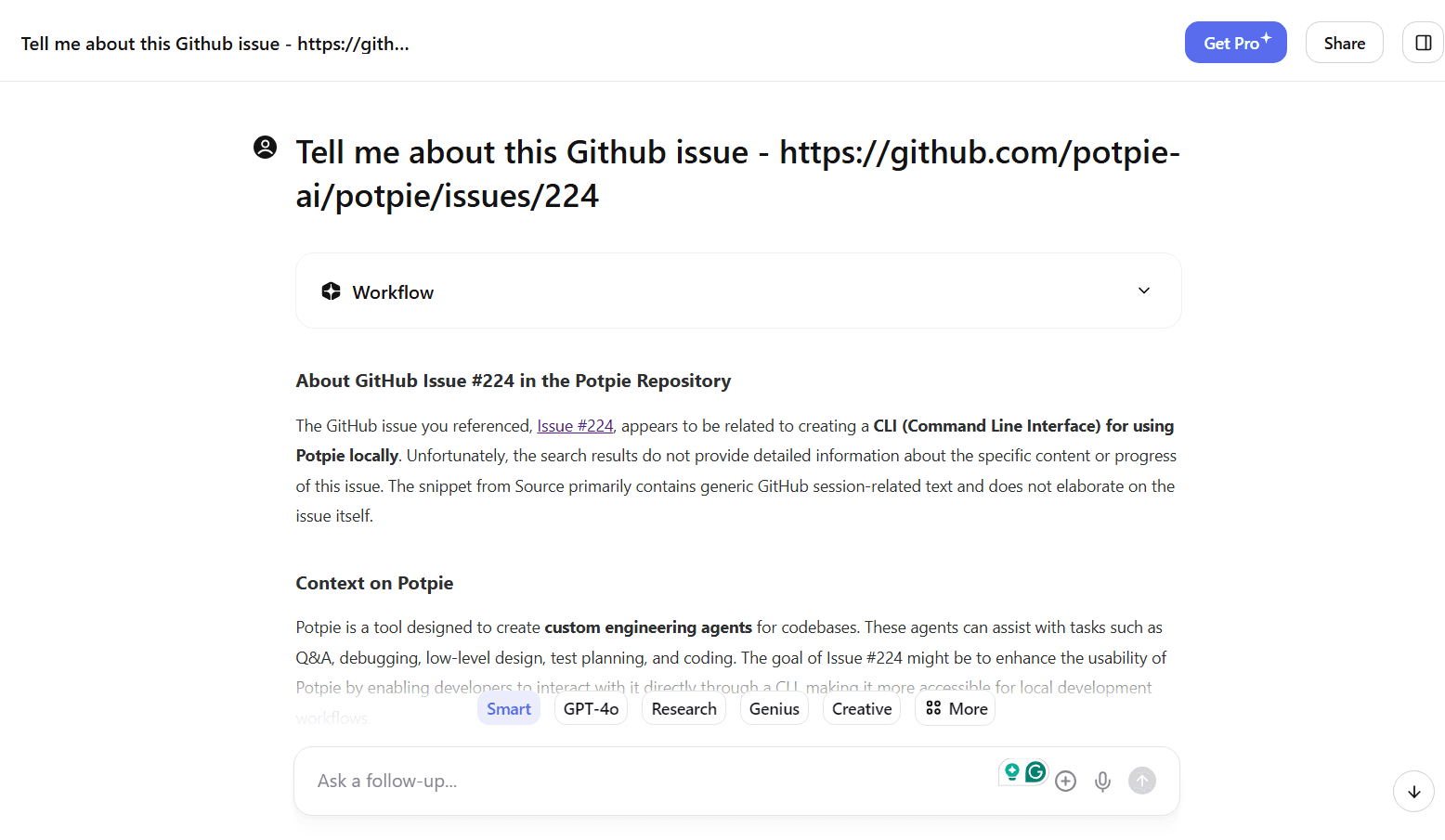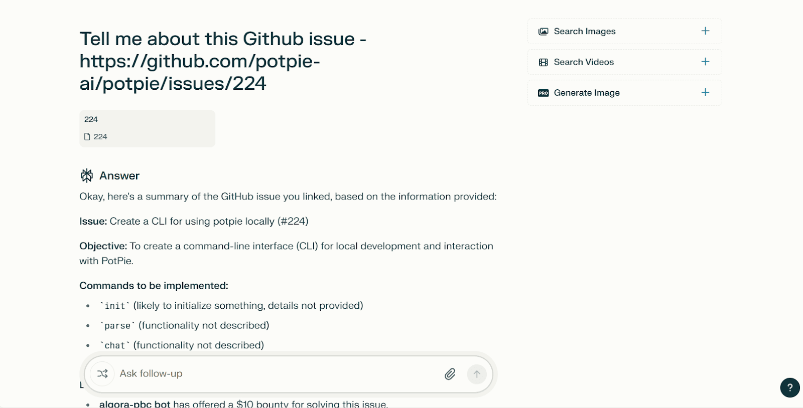 Live Link Referencing: Users can provide a live link within their prompt, allowing the AI Agent to retrieve and align external information with the repository’s context. This ensures that responses are both accurate and relevant.